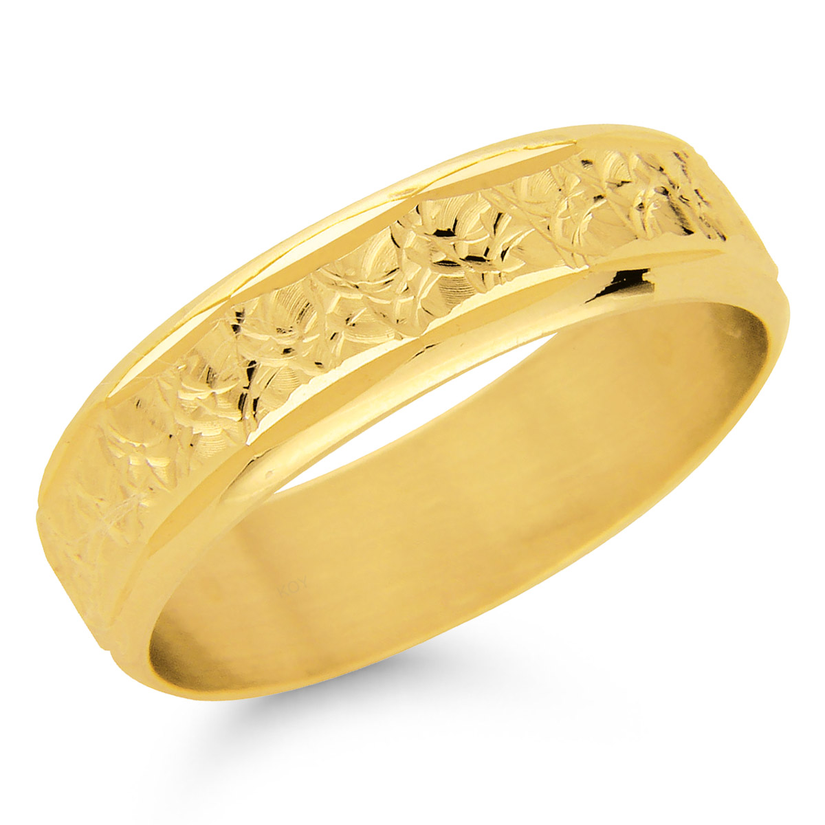 Kollasest kullast 5 mm laiune teemantlõikega Beat of Love abielusõrmus.