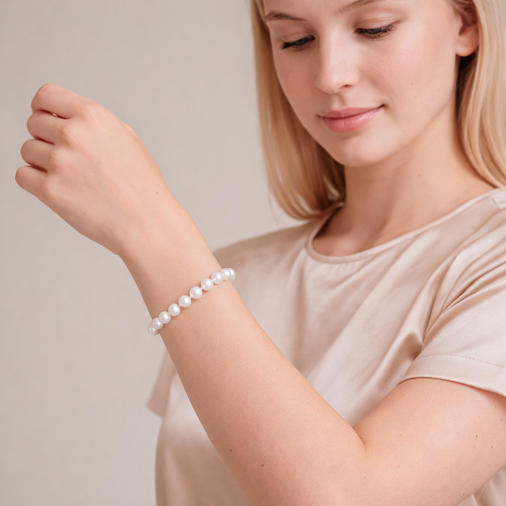 Hõbedase klambriga 6-6,5mm AAA valge käevõru 6-6,5mm