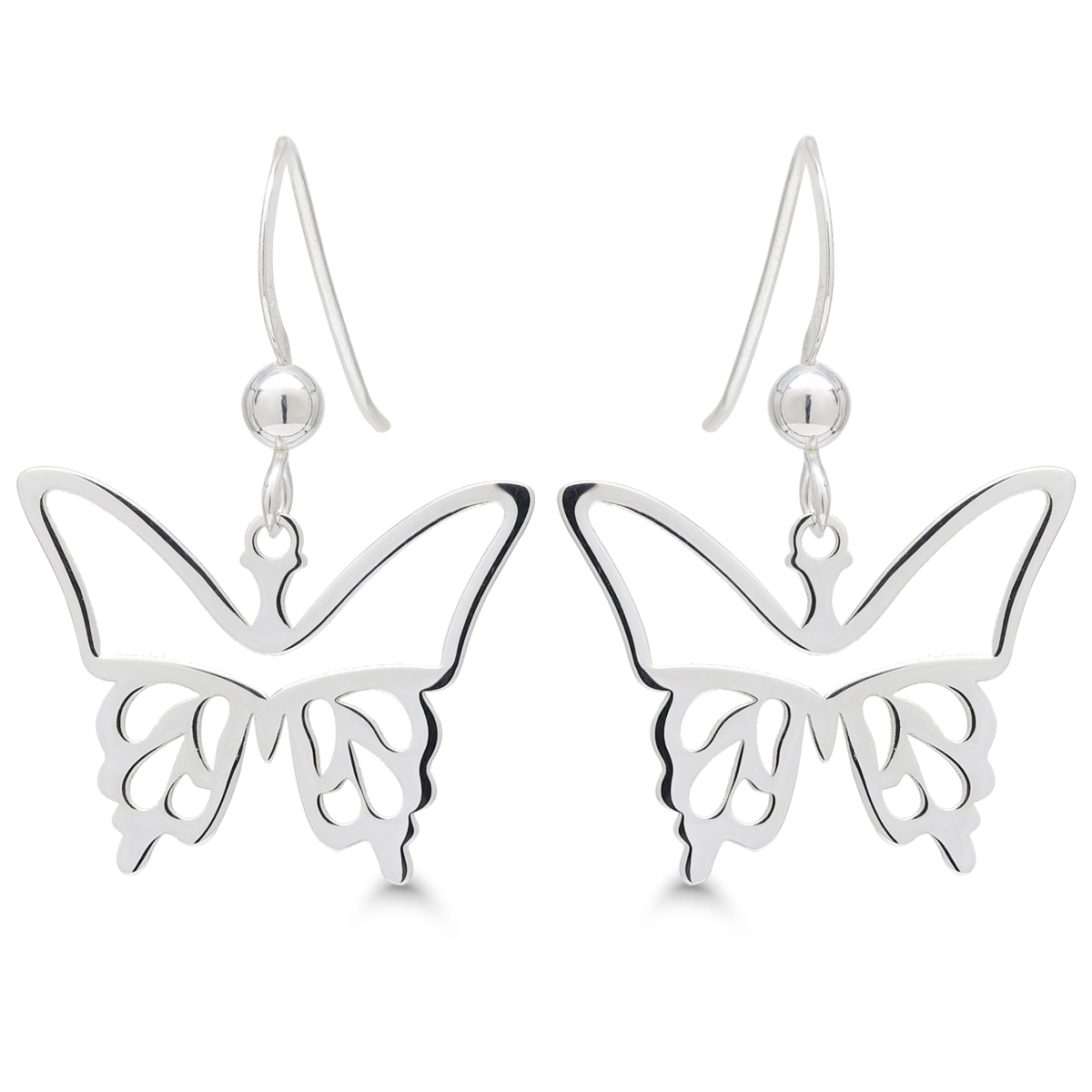 Hõbedased kõrvarõngad rippuvate liblikatega