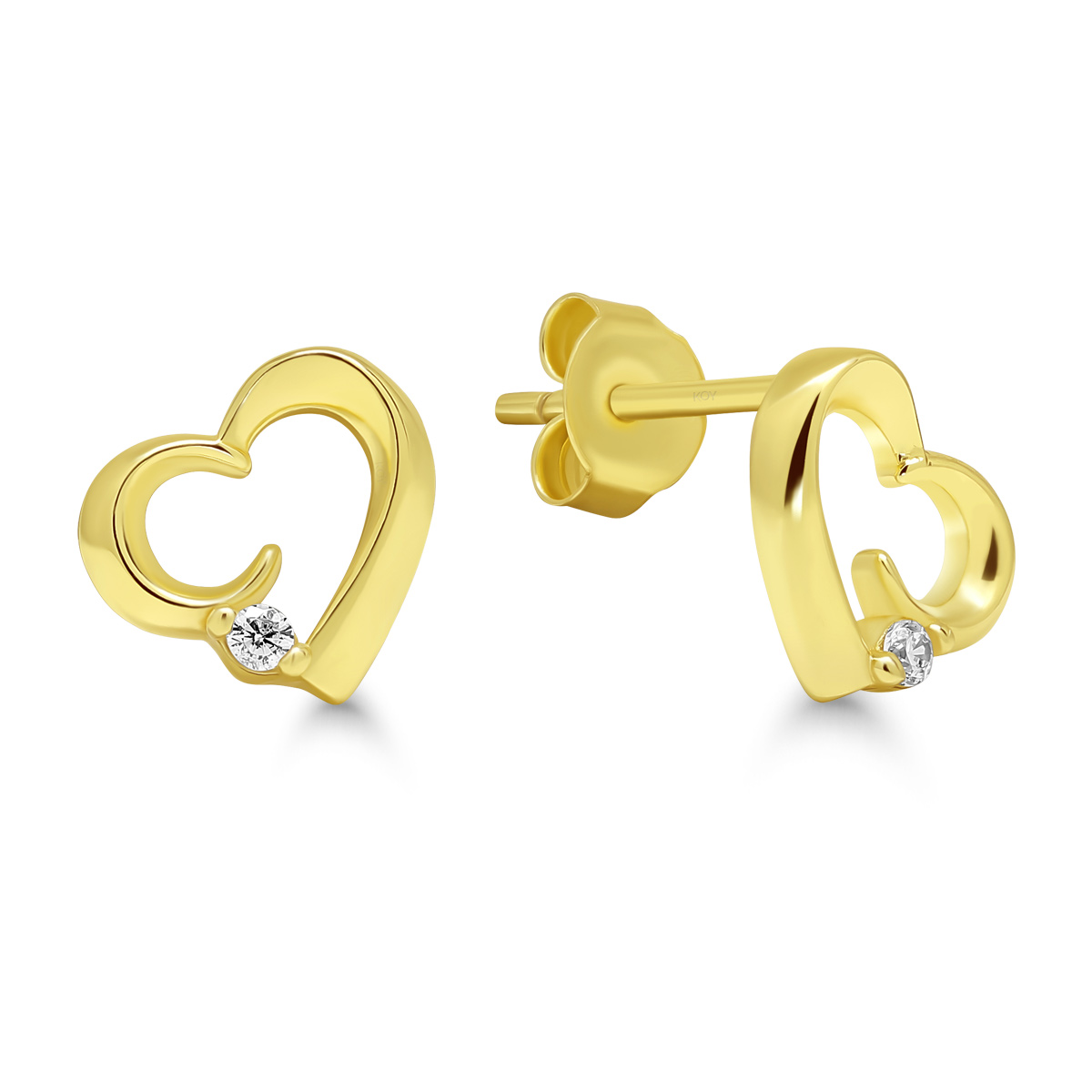 Hõbedast kullatud südame kõrvarõngad sünteetiliste tsirkooniatega