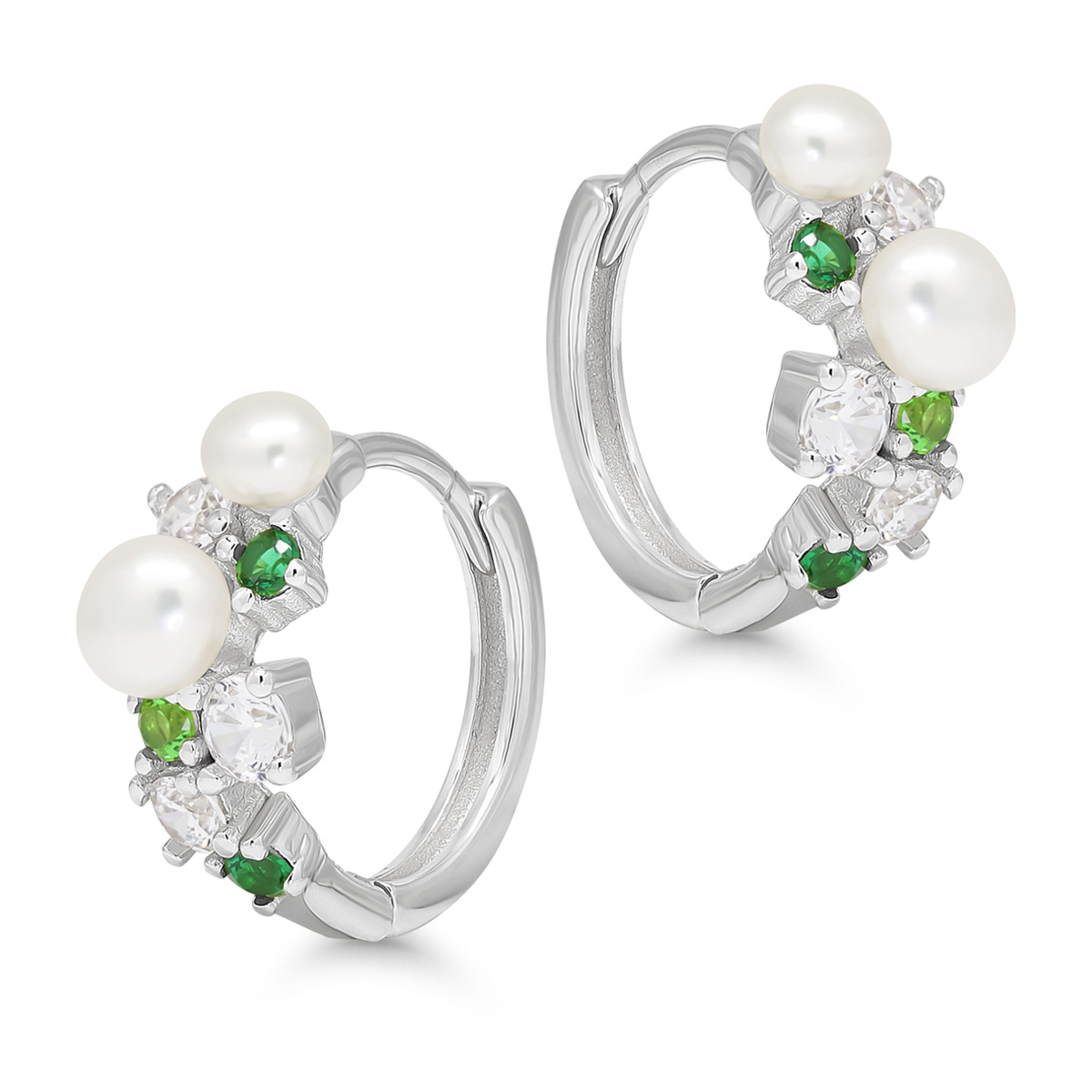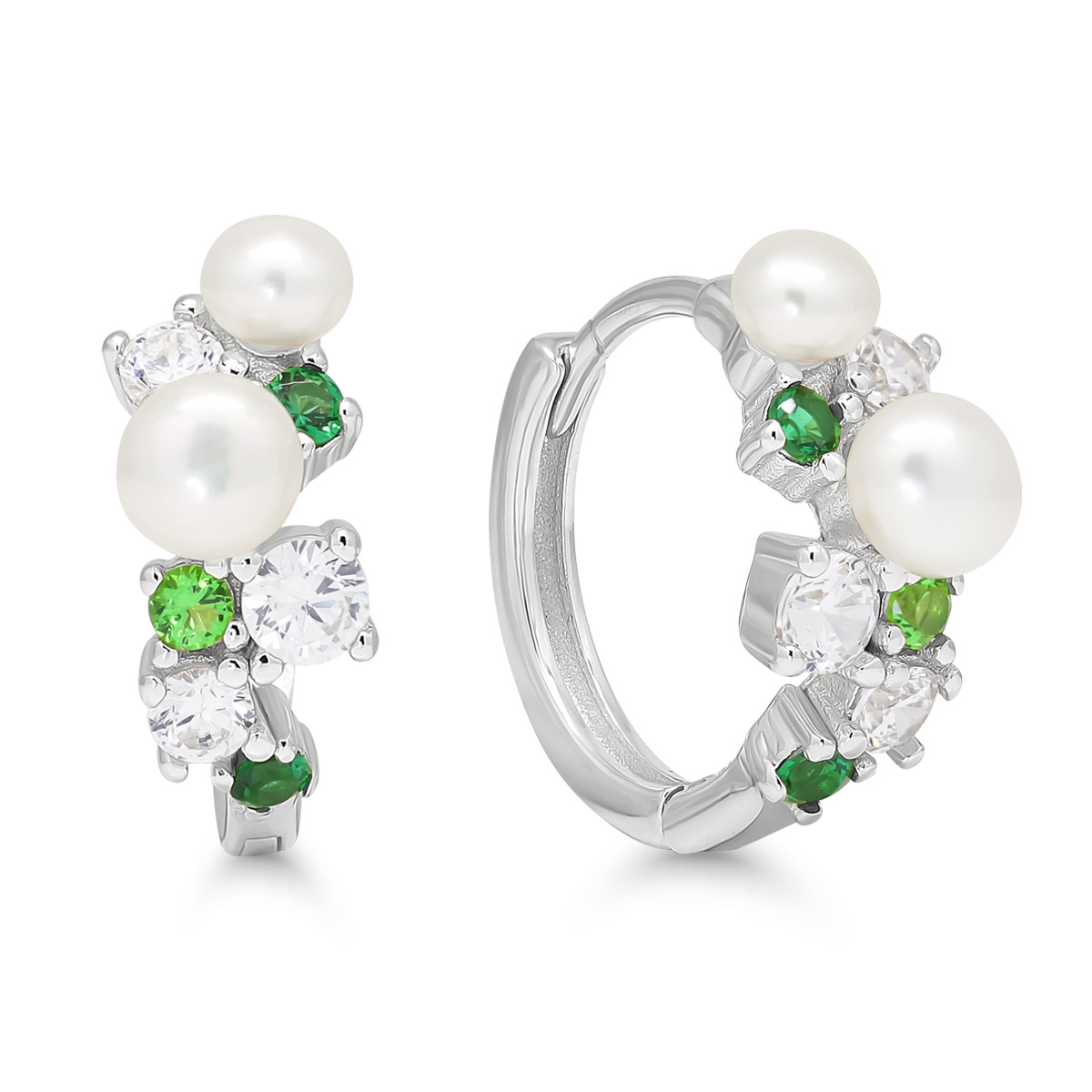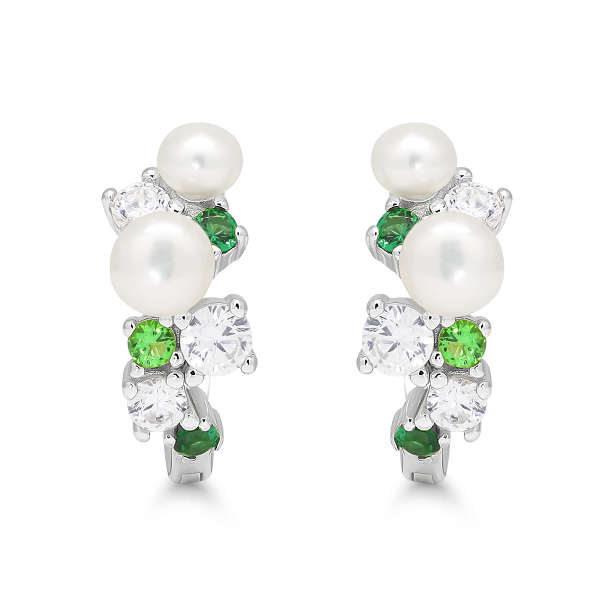 Hõbedast kõrvarõngad rohelise tsirkooniaga ja pärlitega
