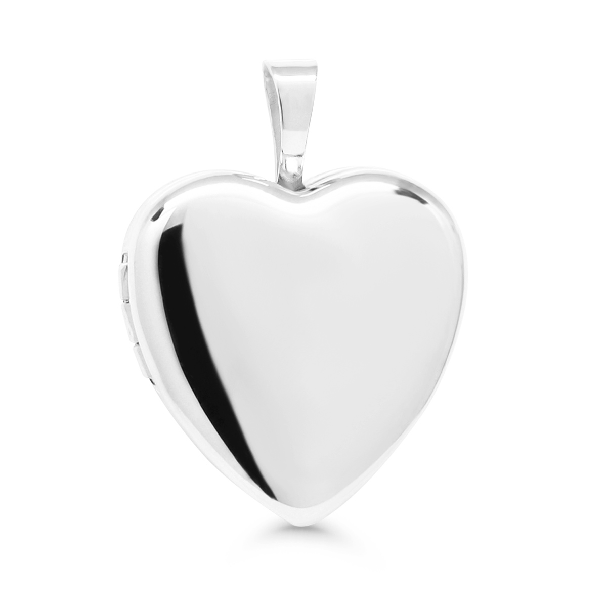 Sileda pinnaga südamekujuline hõbedast medaljon, ruumi kahele pildile.