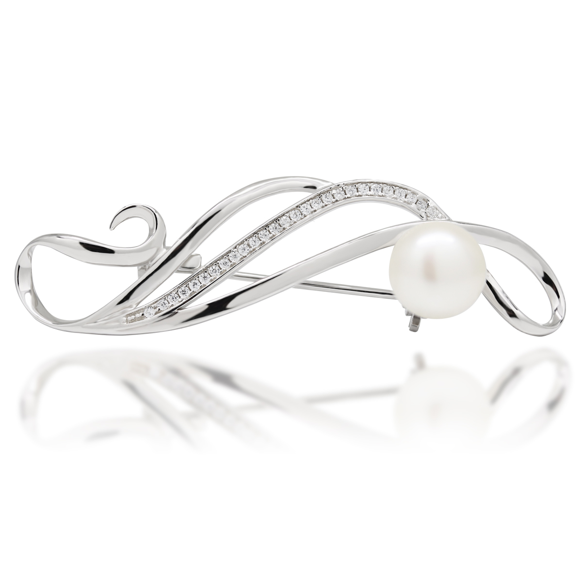 Hopearin pin pärli ja tsirkoonidega.