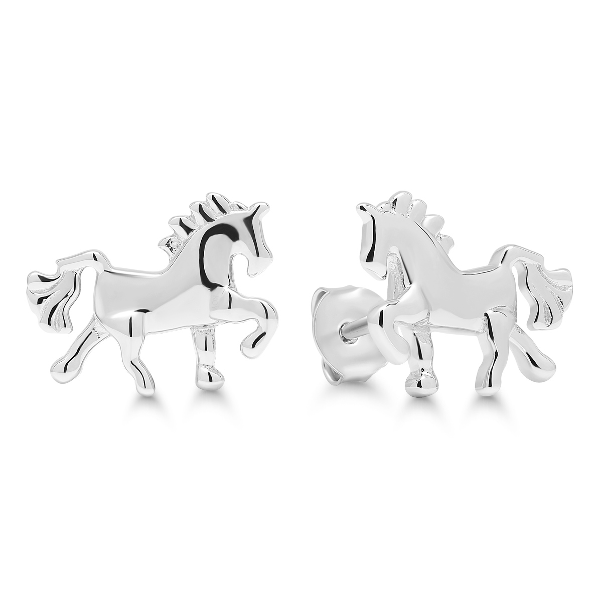 Hõbedased kõrvarõngad nööbikinnitusega. Hobune.