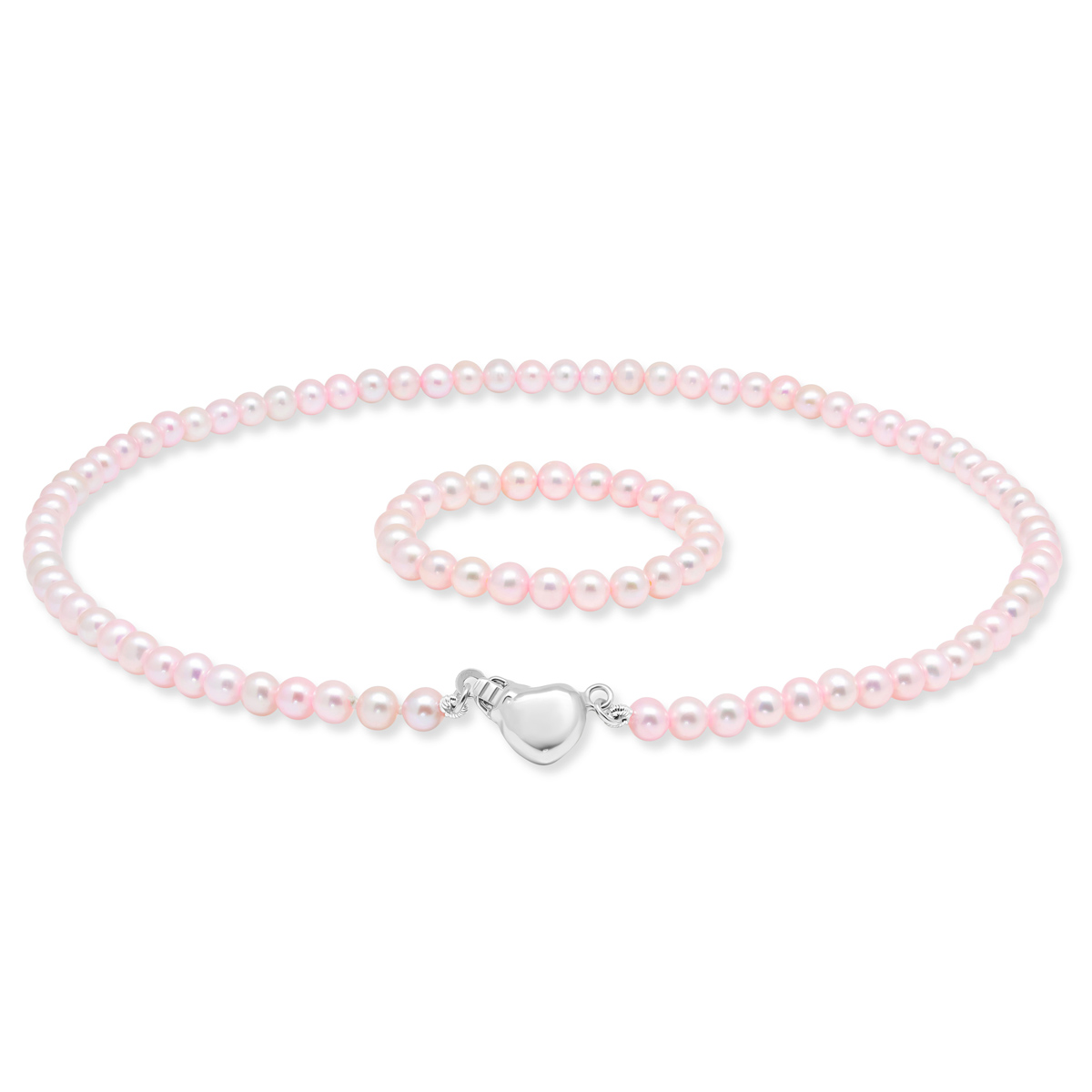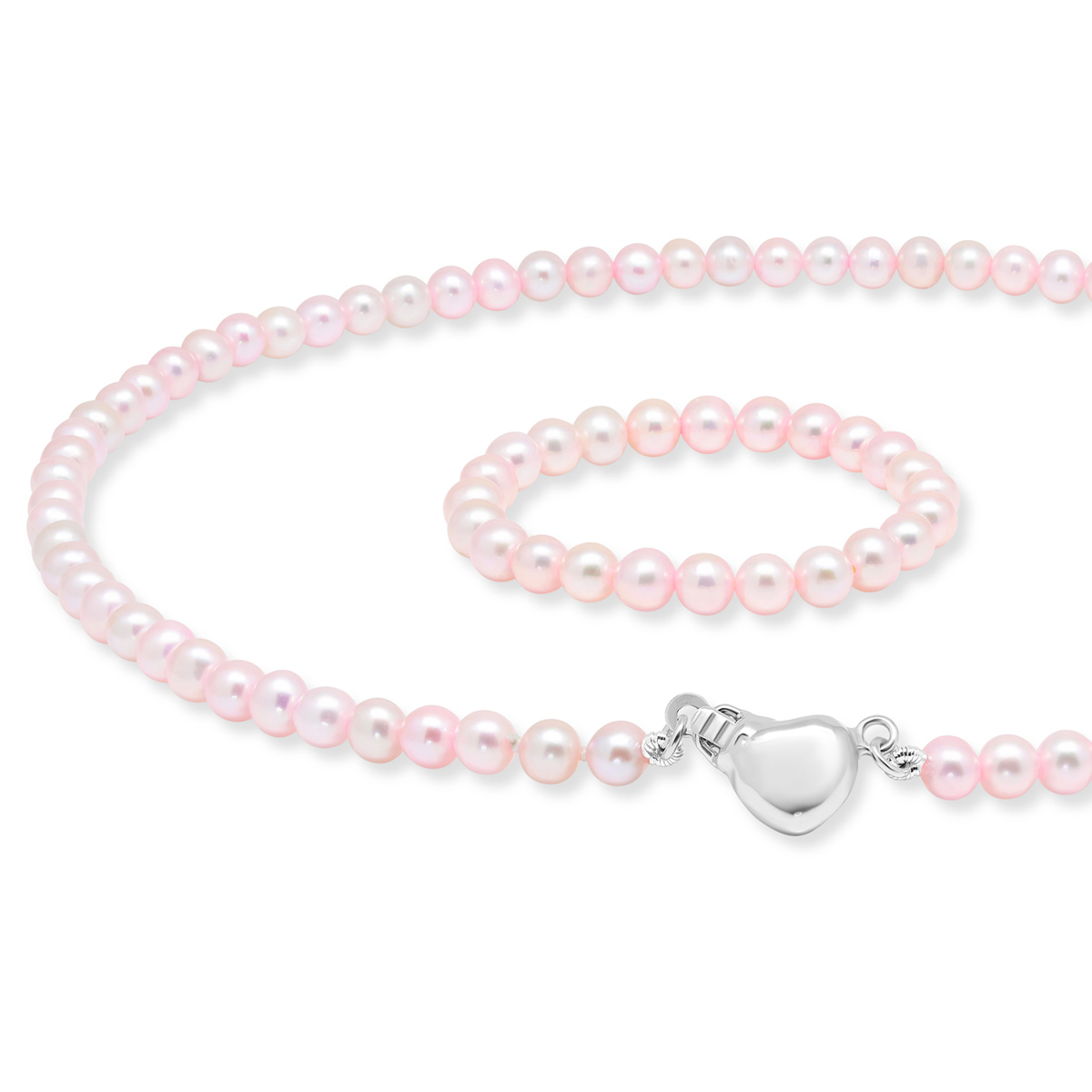 Roosa kaste pärlpael 4-5mm mageveepärlitega ja hõbedane südamekinnitus.