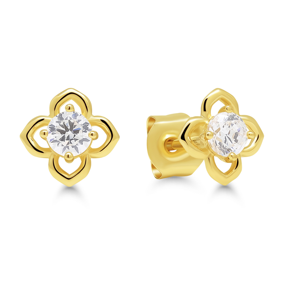 Lillekujulised tsirkooniga kõrvarõngad 14k kollasest kullast.