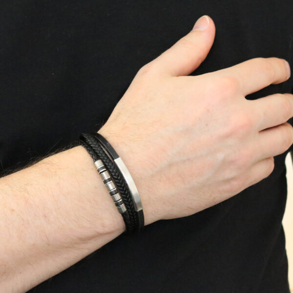 Meeste elegantne nahast käevõru terasplaadiga