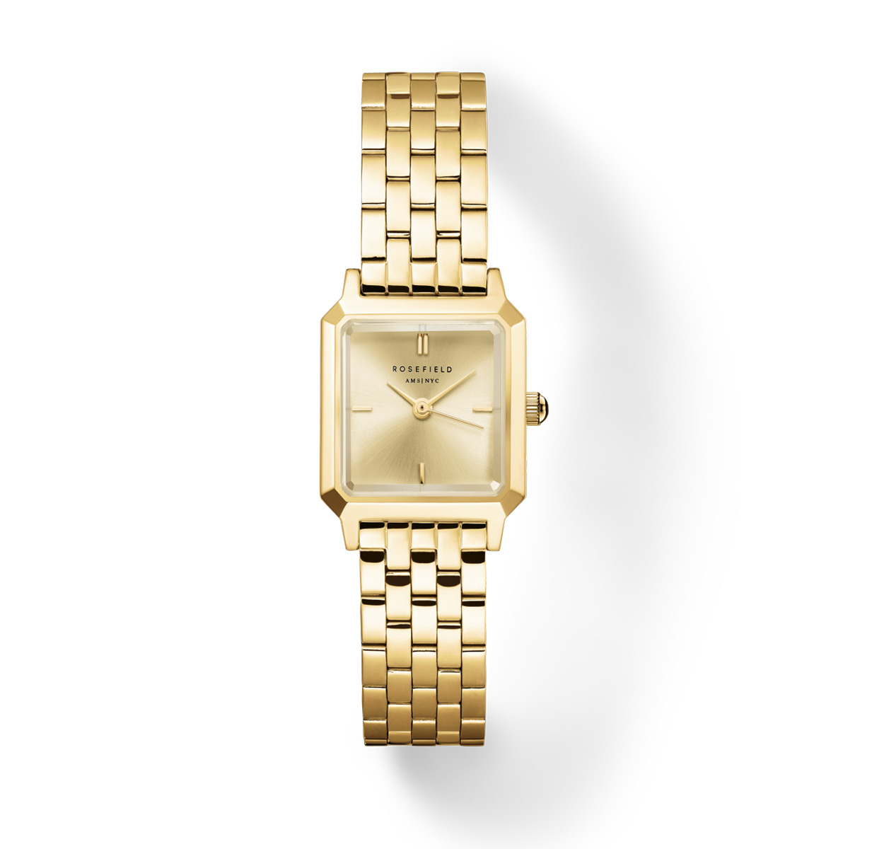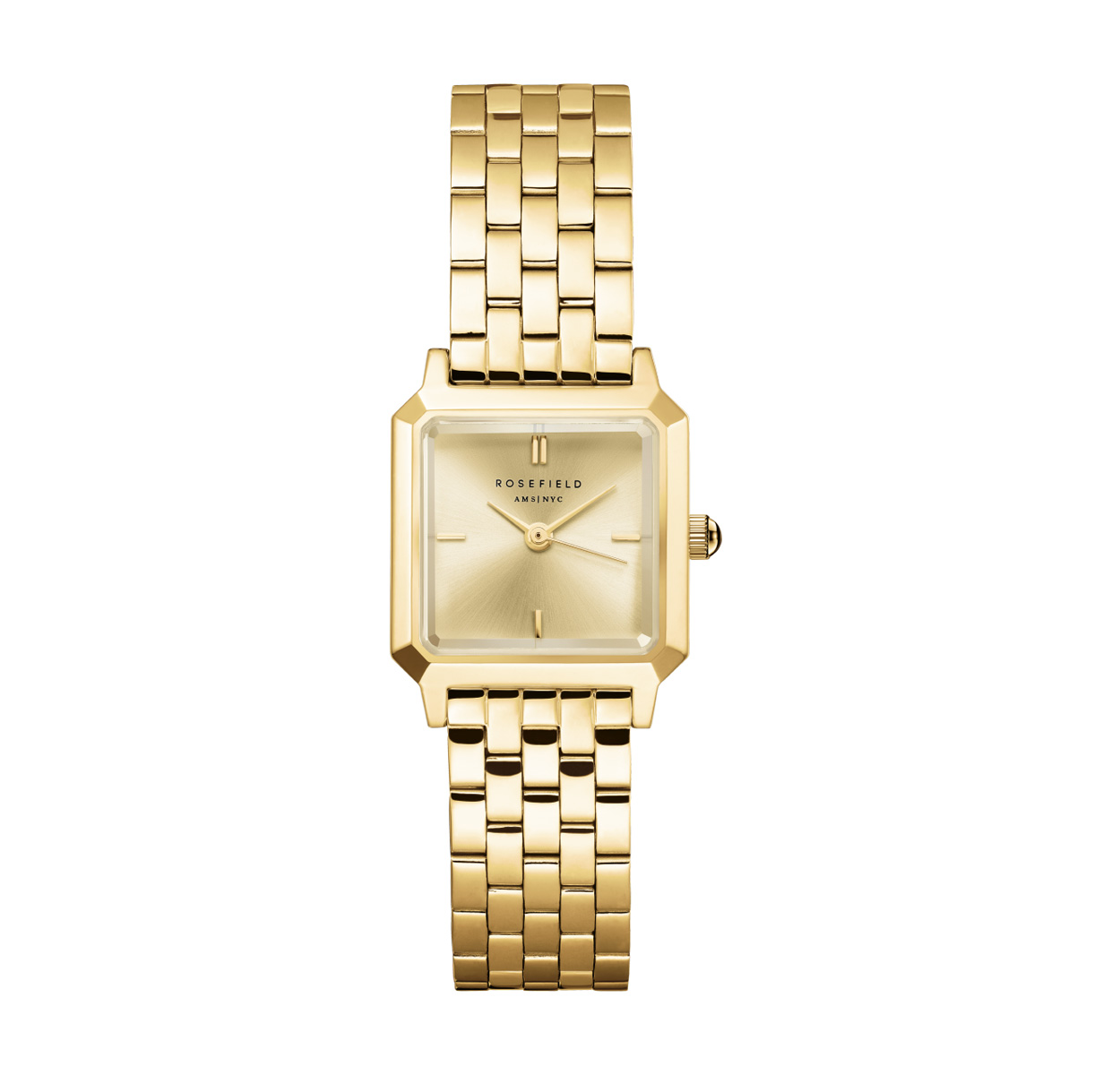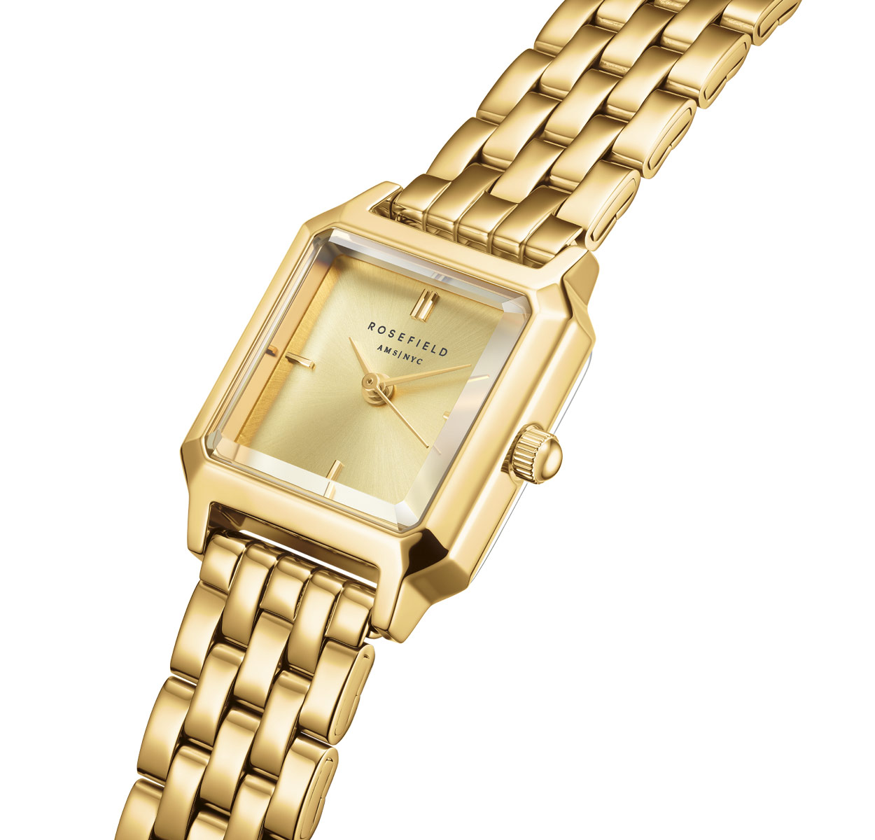 Rosefield Boxelle 8 nurgeline graatsiline käekell naistele, kollase kulla värvi käevõru ja šampanja värvi numbrilauaga
