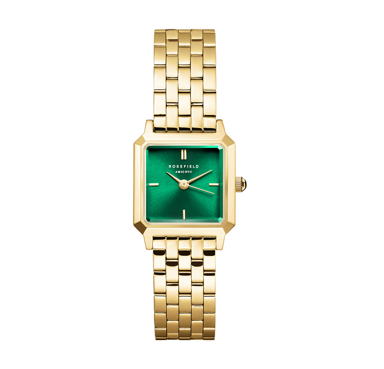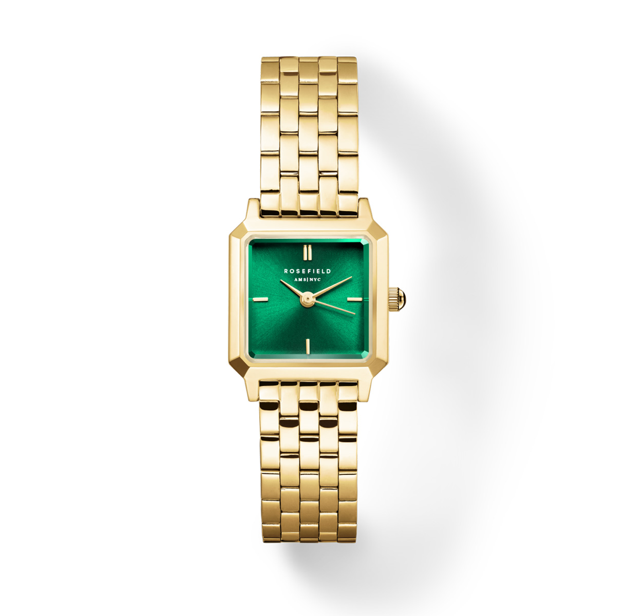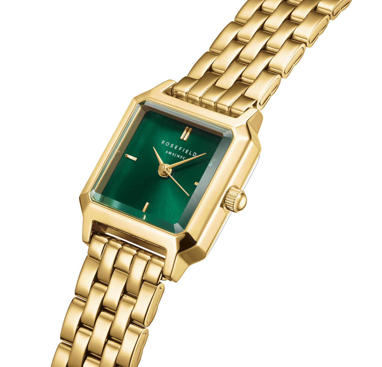 Rosefield Boxelle 8 nurgaga graatsiline käekell naistele, kollane kuldne käevõru ja smaragdroheline numbrileht