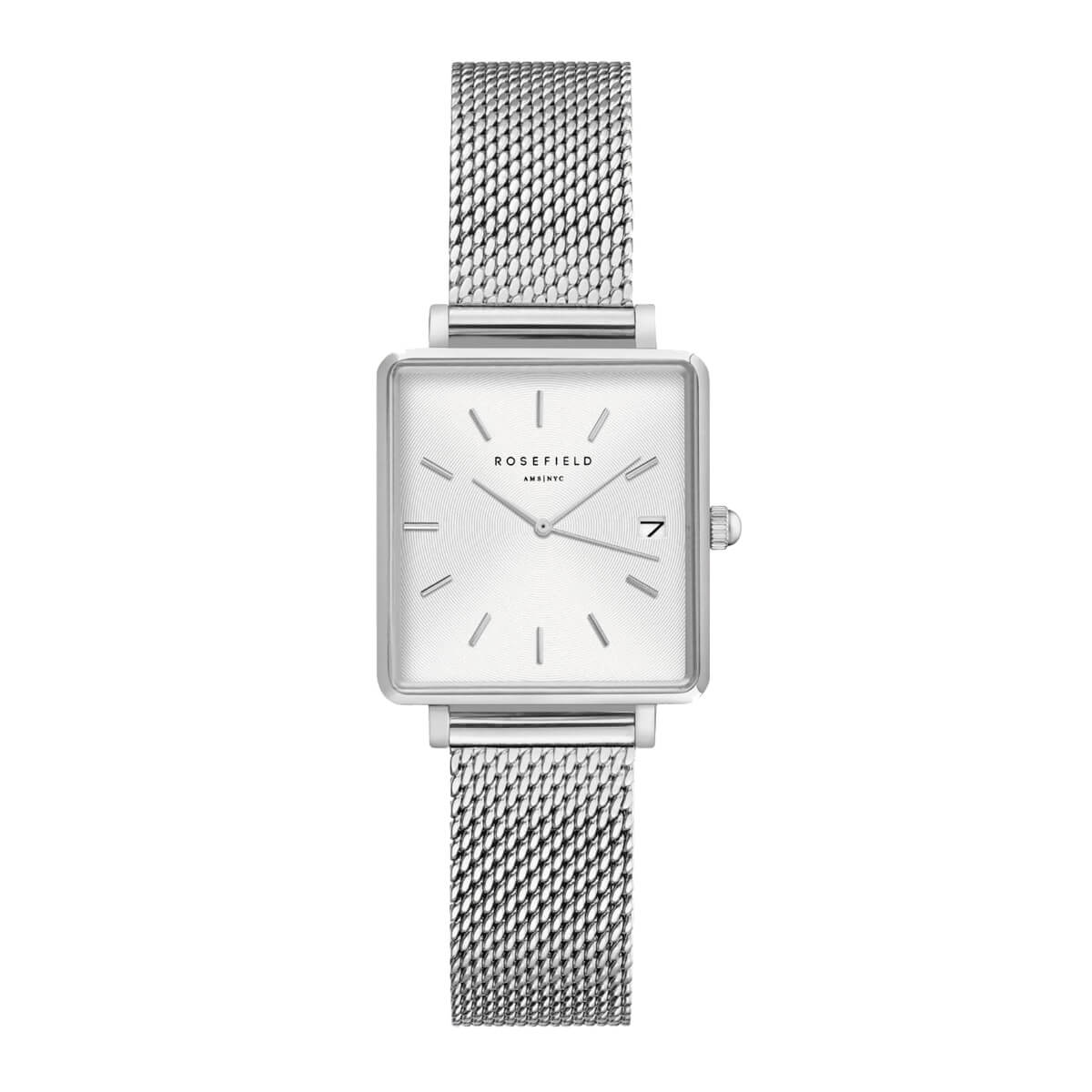 Rosefield The Boxy XS Silver Mesh on elegantse ja elegantse välimusega hõbedane naiste käekell