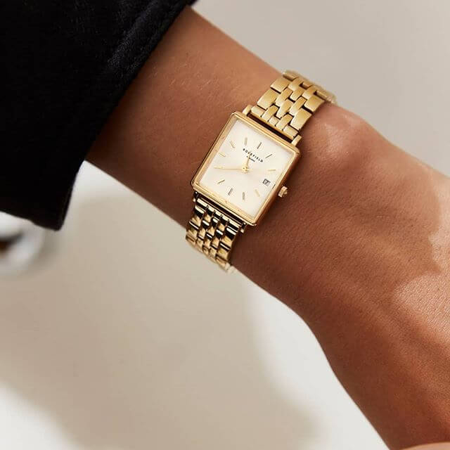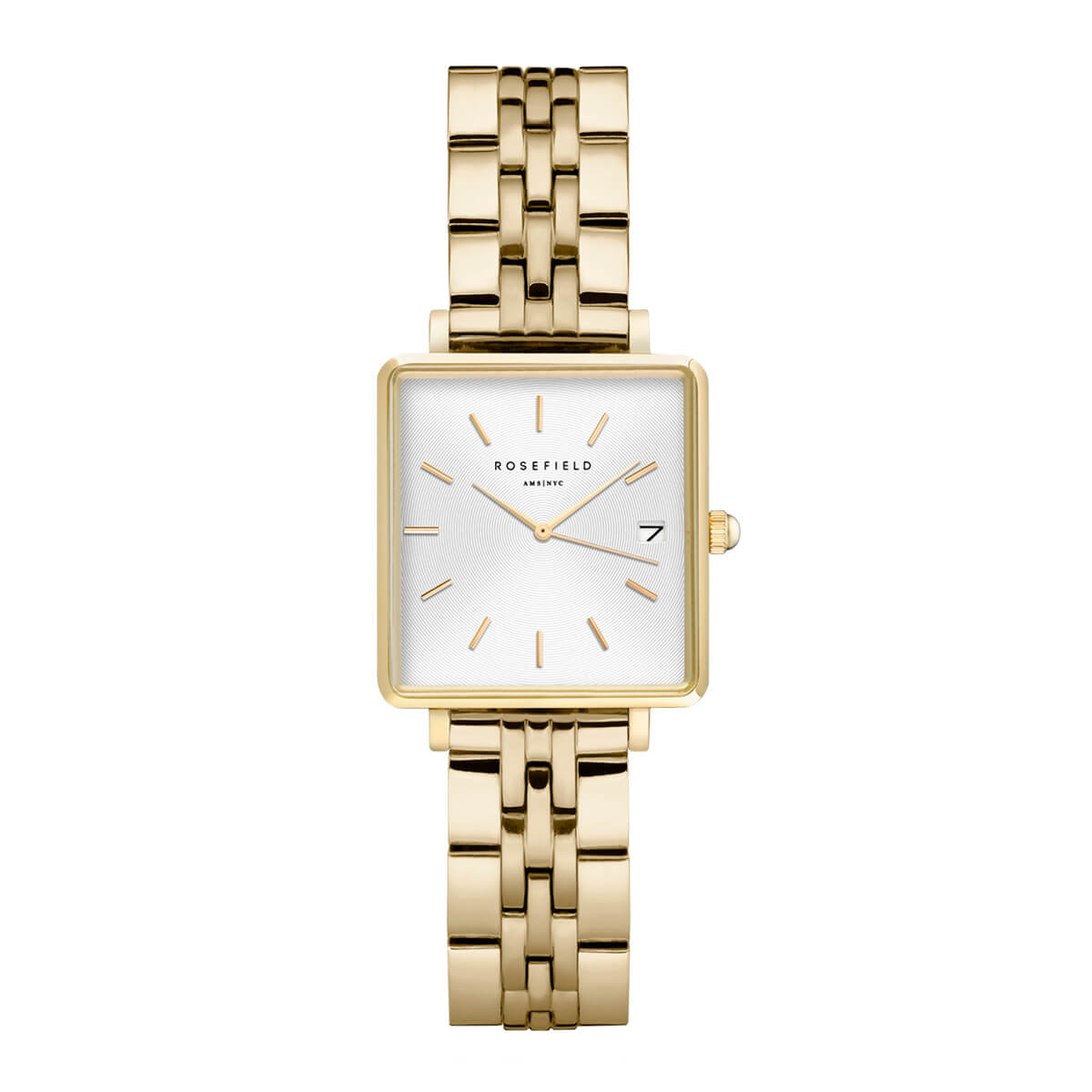 Rosefield The Boxy XS on elegantse ja särtsaka kuldse värvusega naiste käekell.