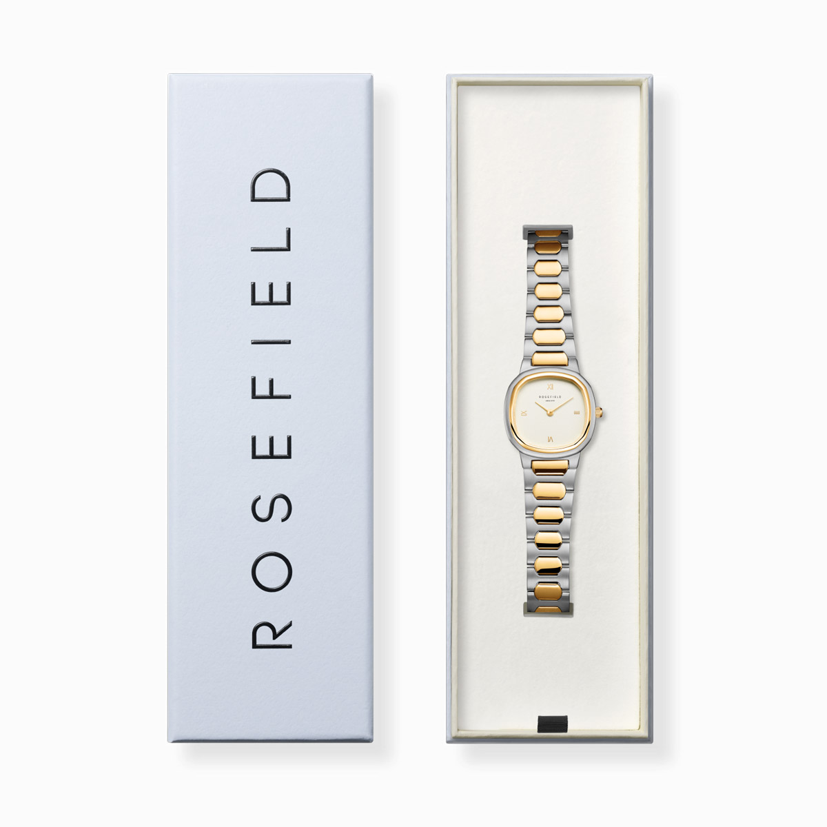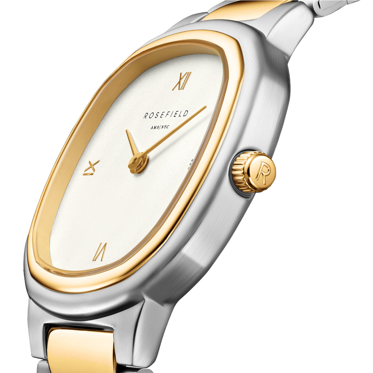 Rosefield Gaia naiste käekell kreemikat värvi numbrilauaga ja kahetoonilise käevõruga. Rooma numbrid.