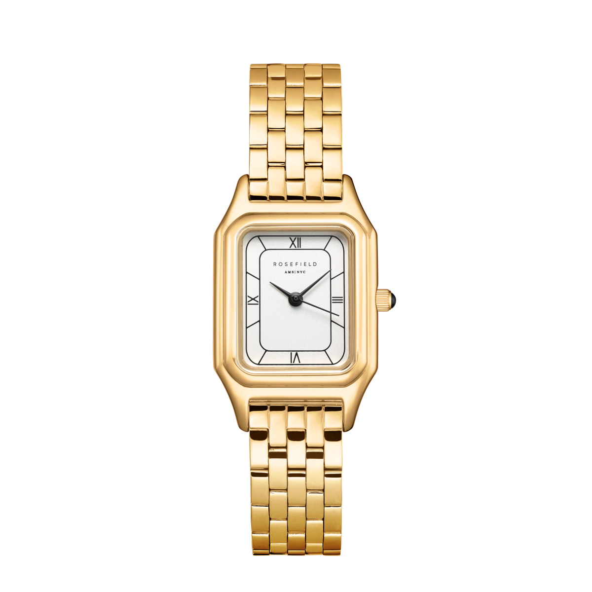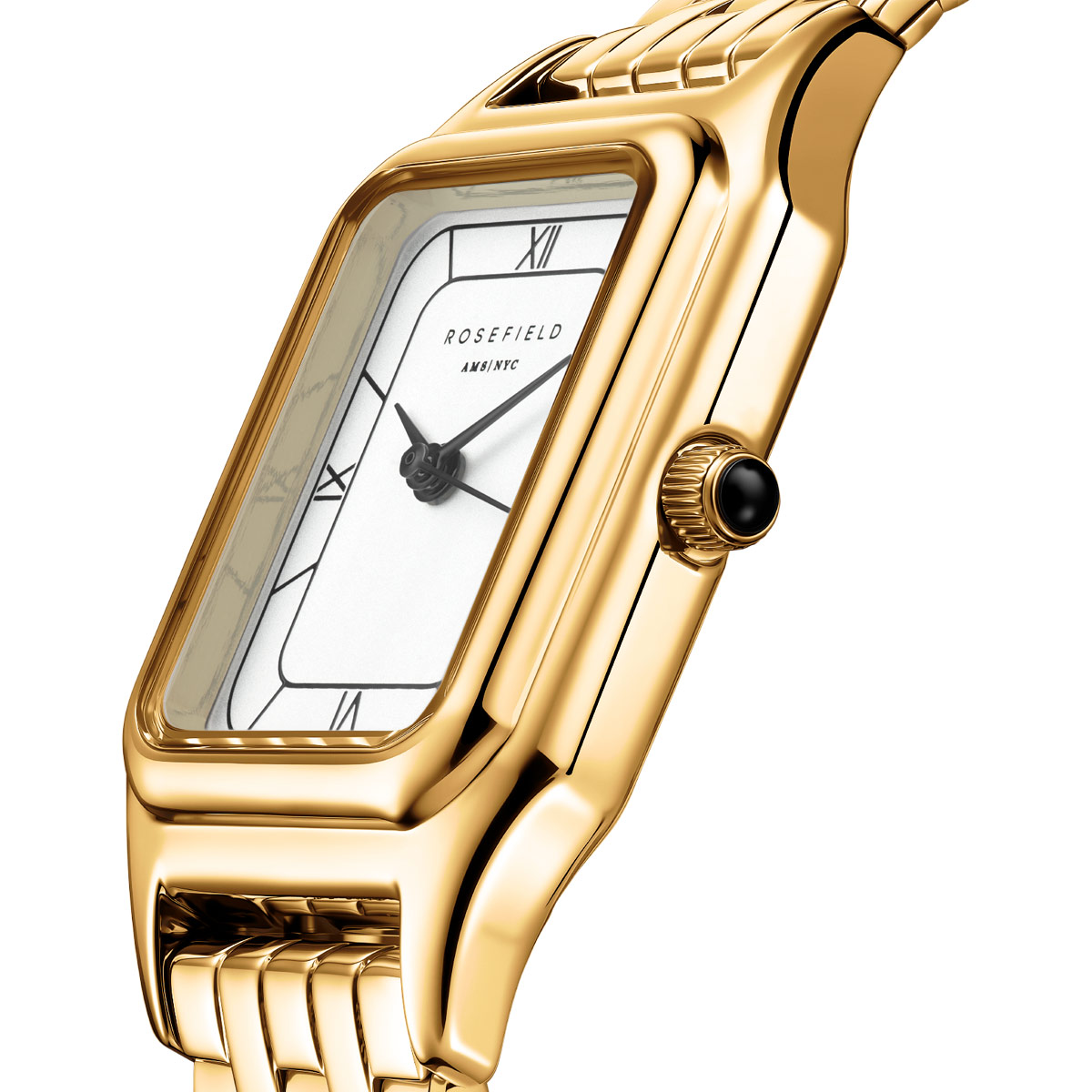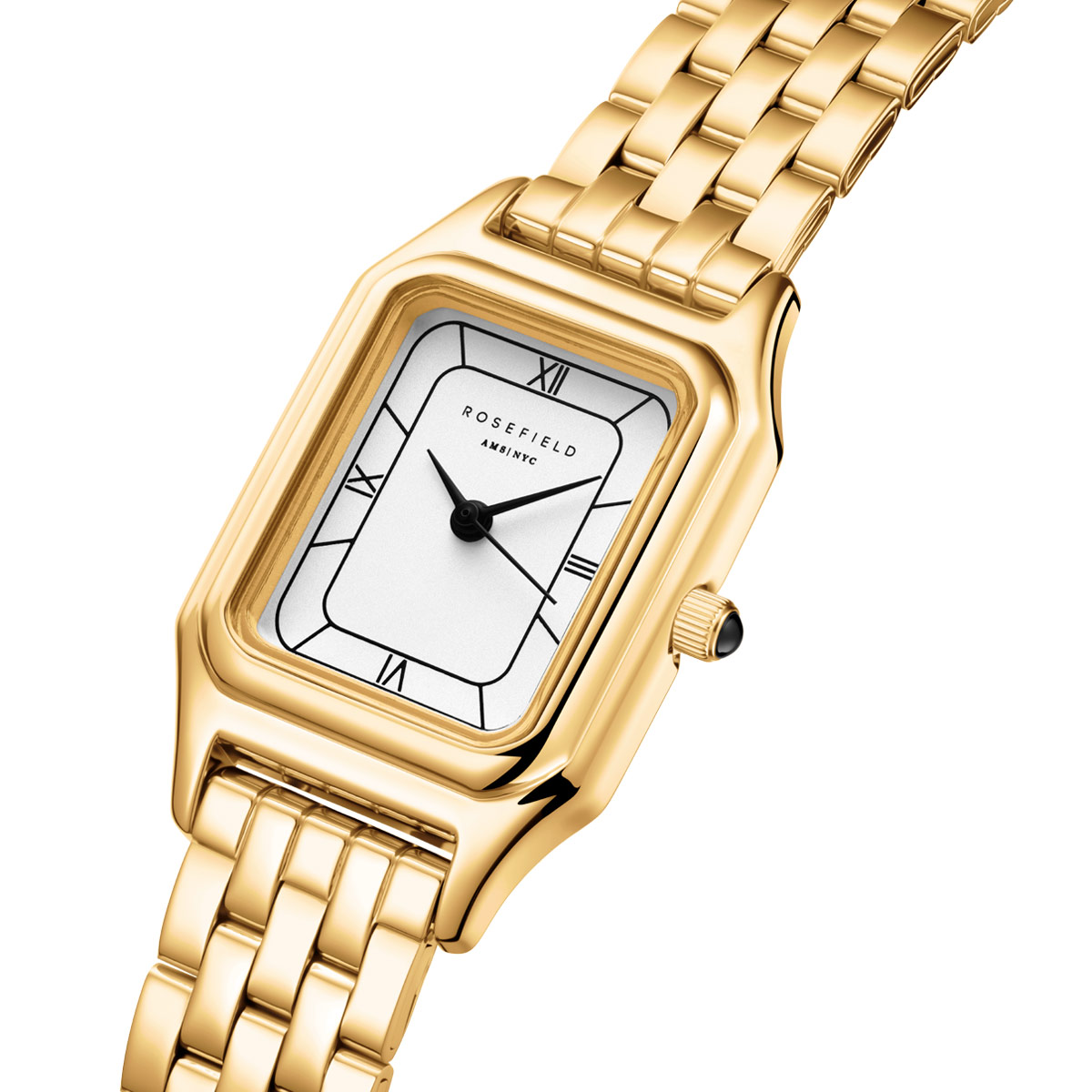 Rosefield Ivy kollektsiooni kullavärviline naiste käekell 8-kandilise numbrimärgi ja kullavärvilise käevõruga. Graatsiline ja elegantne käekell naistele. Rooma numbrid.