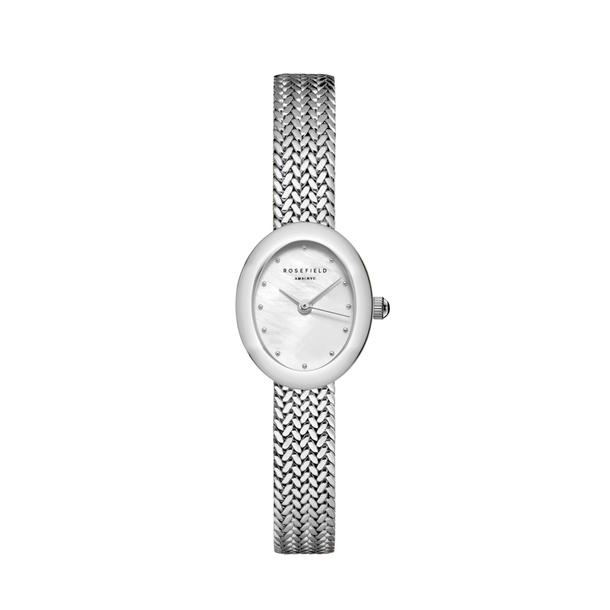 Rosefield Mini´s kollektsiooni hõbedane naiste käekell ovaalse numbrimärgi ja hõbedase käevõruga. Graatsiline ja elegantne käekell naistele.