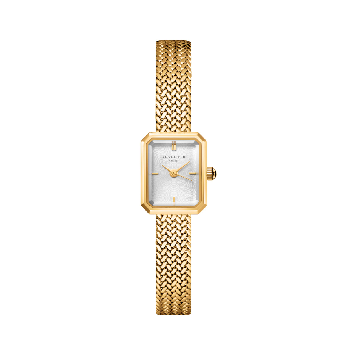 Rosefield Mini´s kollektsiooni kullavärviline naiste käekell 8-kandilise numbrilauaga ja kullavärvilise käevõruga. Graatsiline ja elegantne käekell naistele.