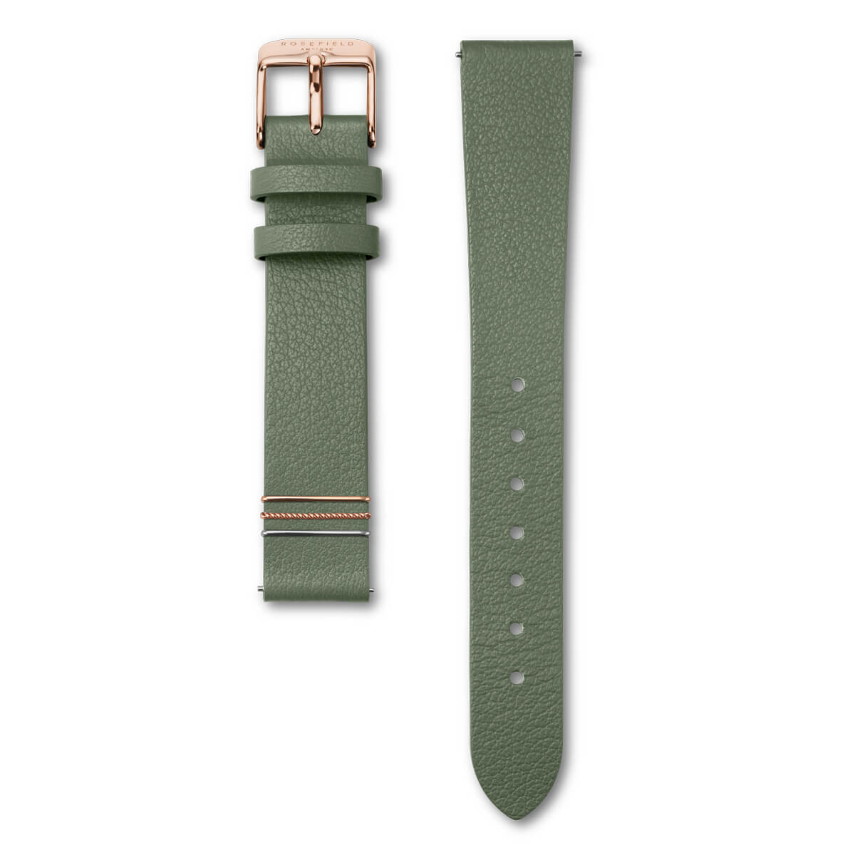 Rosefield 16mm roheline nahast käevõru. Kuldse, punase kulla ja hõbeda värvi kaunistustega käevõru ja punase kullatud pandlaga.