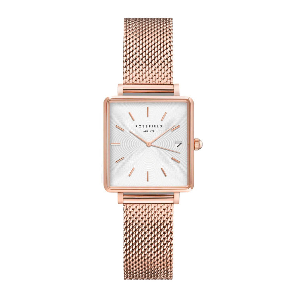 Rosefield The Boxy XS Rosegold Mesh on elegantse ja elegantse punase ja kuldse värvusega naiste käekell