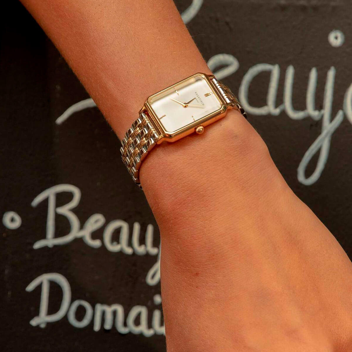 Rosefield The Octagon terasest/kuldne kahetooniline naiste käekell