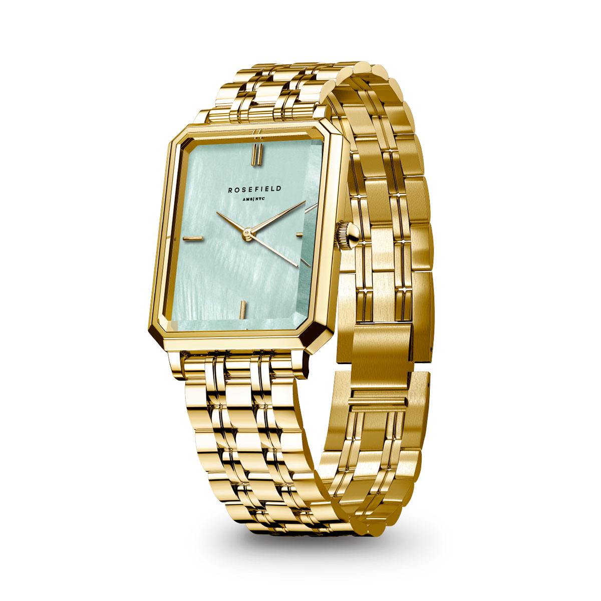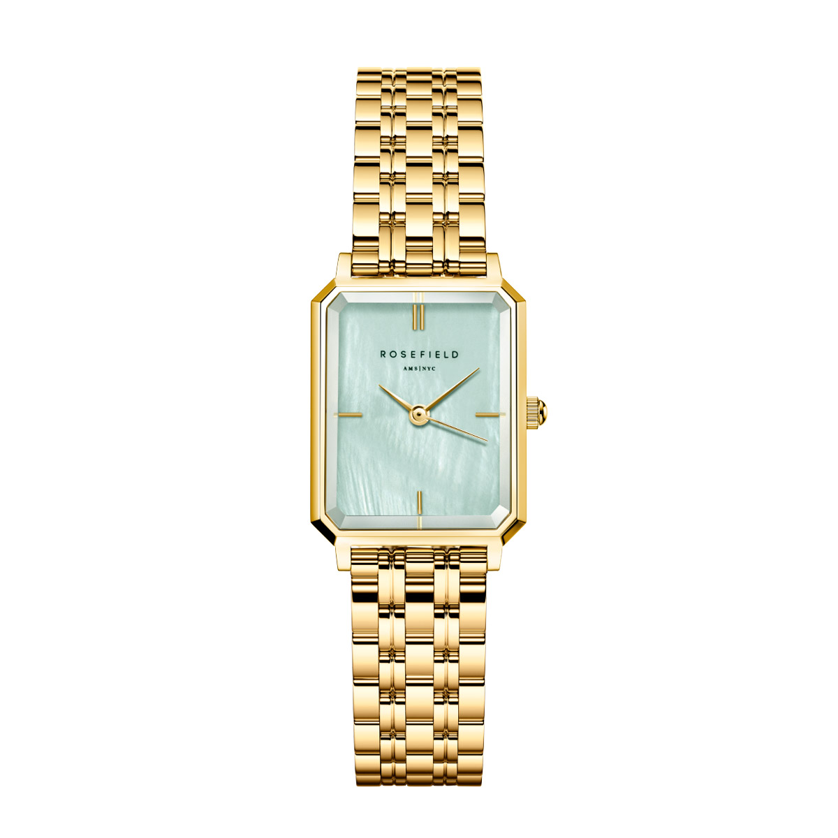 Rosefield The Octagon XS 8 nurgeline graatsiline käekell naistele, kuldne käevõru ja mündiroheline numbrileht