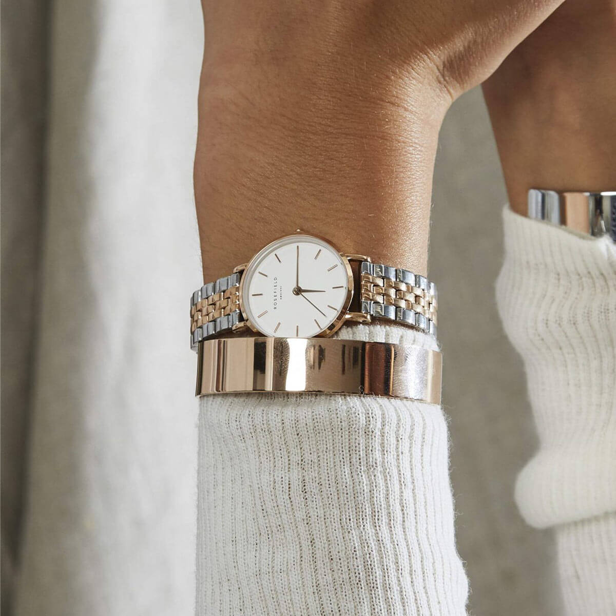 See “uusvintage” kollektsioon on austusavaldus ajatule esteetikale 26 mm numbrimõõduga – seni väikseim Rosefieldi kell. Sellel kellal on kahetooniline roostevabast terasest käevõru, roosakuldne korpus ja hele numbrileht. Selle väiksem suurus ja detailid õhkavad vintage-tunnet ja loovad elegantse naiseliku välimuse.