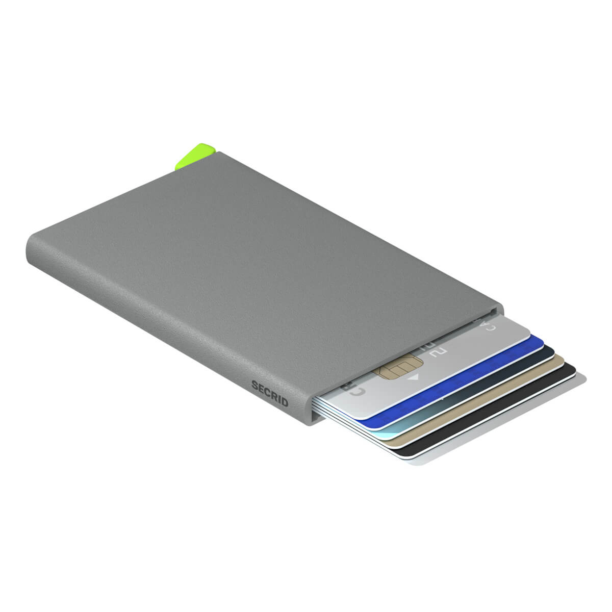 Secrid hall pulbervärvitud Cardprotector Powder Betoonist kaardihoidja heleda neoonvärvi mehhanismiga. Kaardihoidja on valmistatud alumiiniumist ja mahutab kuni 6 kaarti, mis tõstetakse nupuvajutusega astmeliselt üles. See teeb soovitud kaardi valimise lihtsaks.