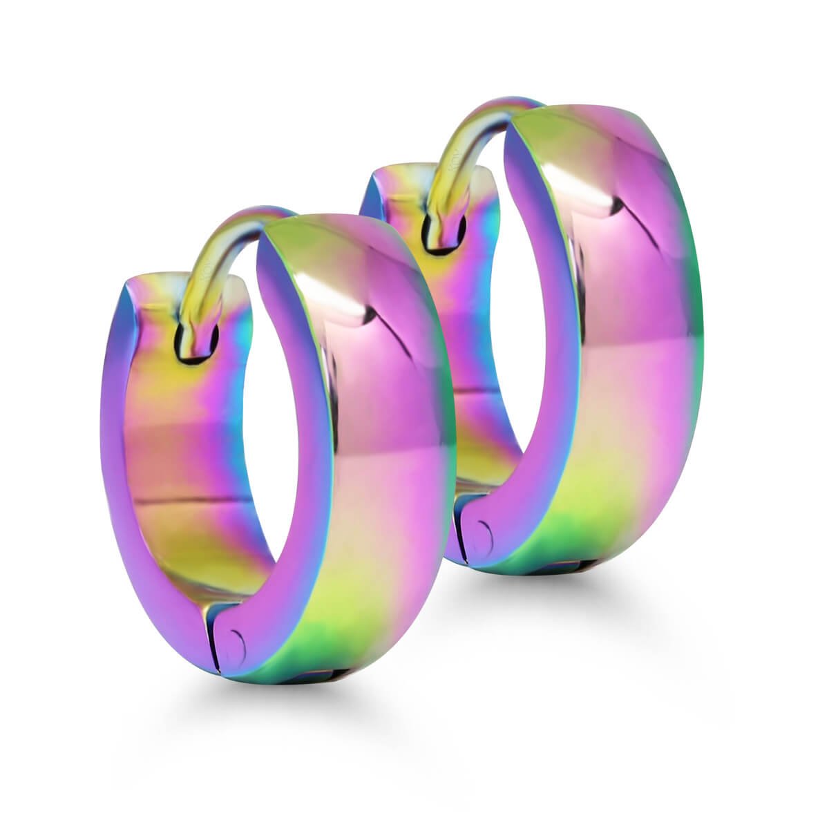 Mitmevärvilised “Spectrum” terasest kõrvarõngad, millel on hingedega sulgur.