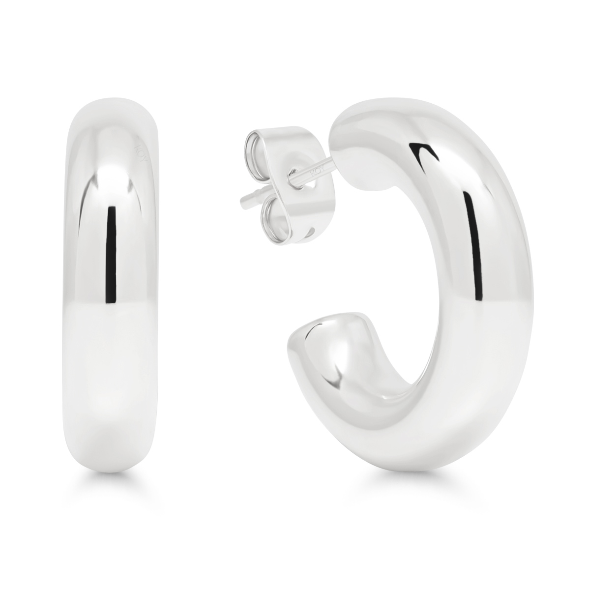Hõbetatud terasest kõrvarõngad, mis on kinnitatud nööpnõelaga