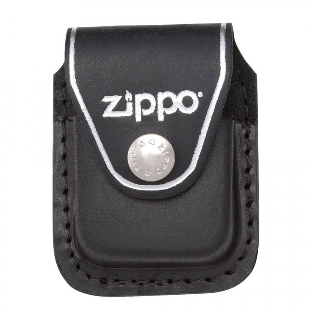 Zippo metalliklamber mustast nahast vöökott Zippo tulemasinatele tavaliste plaatidega. Tootenumber LPCBK.
